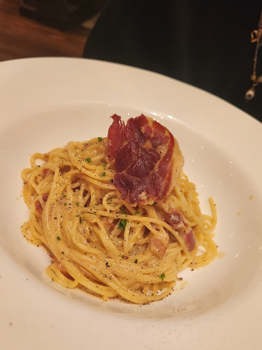 Spaghettini Carbonara Tossed with Pancetta Egg Yolk & Fresh Pecorino